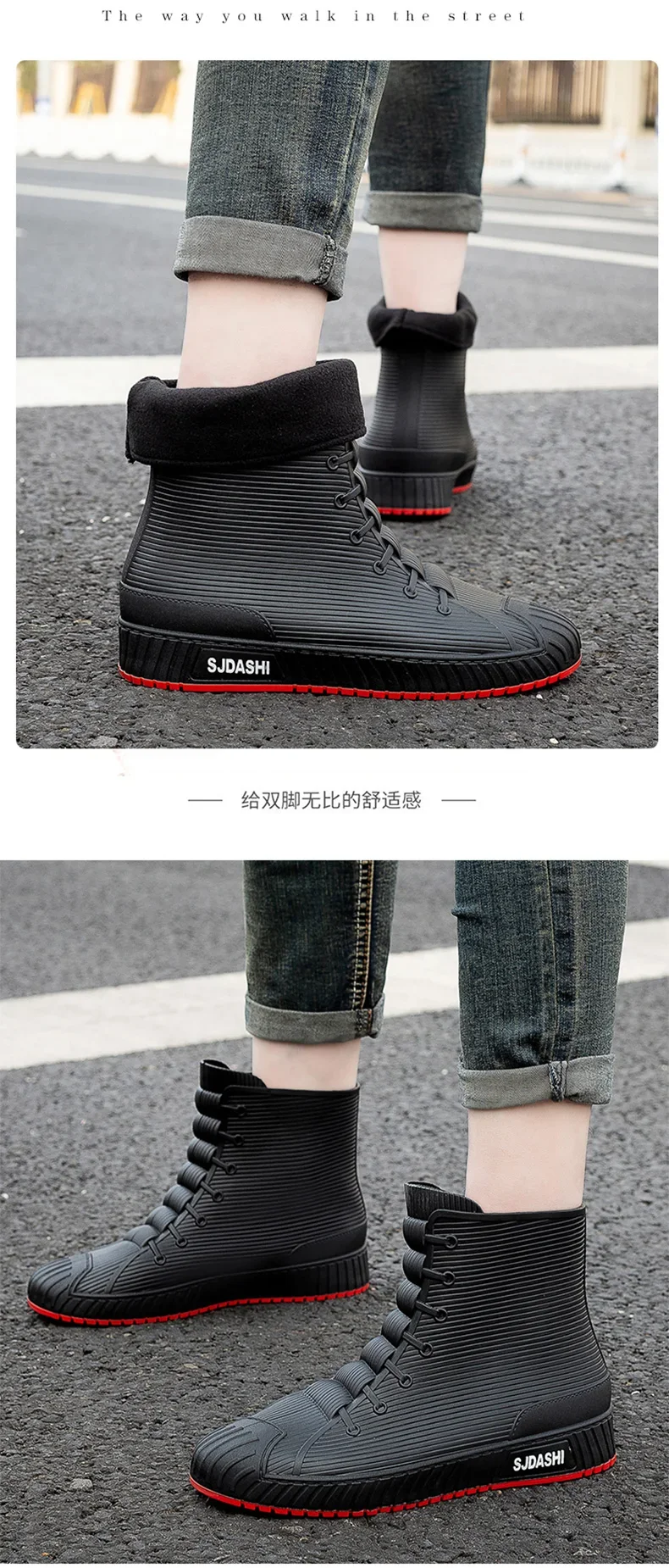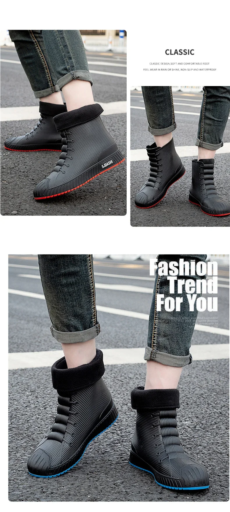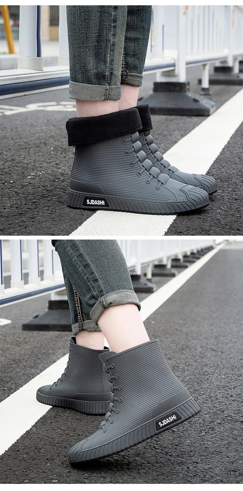 Nuevas botas impermeables de caña corta para hombre y mujer, forradas con forro polar, cálidas, antideslizantes, resistentes al desgaste, ideales para la lluvia y el exterior.