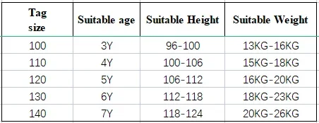️ 7T: Altura recomendada: 118-124CM; Peso recomendado: 20-26KG.