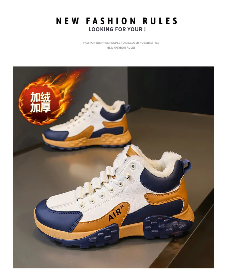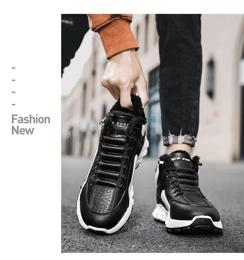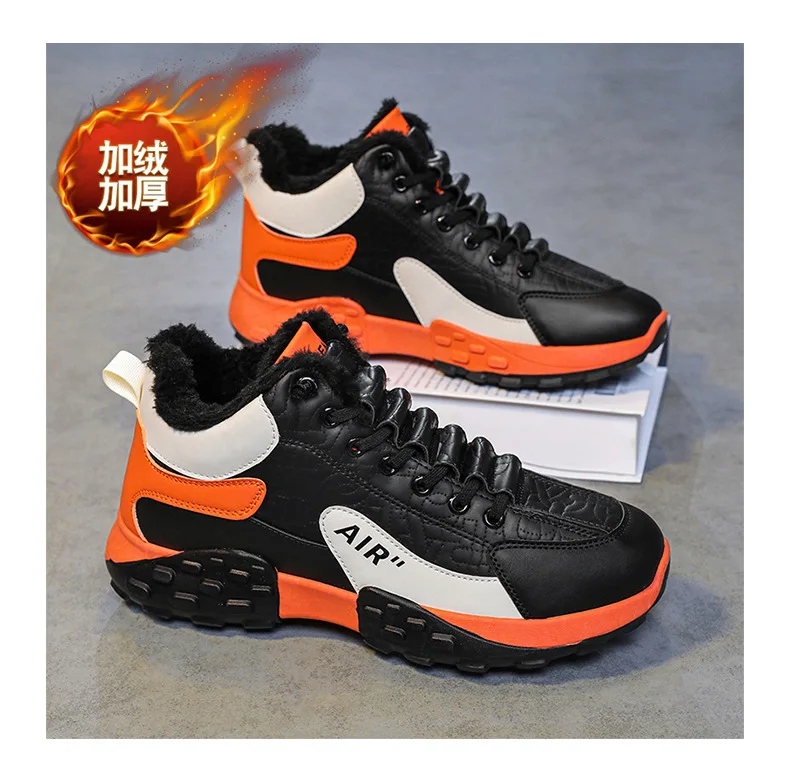 Zapatos de plataforma cálidos de algodón para hombre, zapatillas gruesas para hombre, zapatos vulcanizados de invierno, zapatillas casuales de moda para hombre, botas de nieve de caña alta