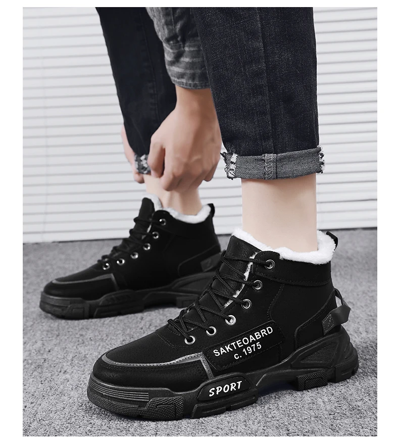 Botas nuevas para hombre, de invierno, de felpa, para la nieve, estilo casual, para exteriores, con cordones, cálidas, antideslizantes, hasta el tobillo.