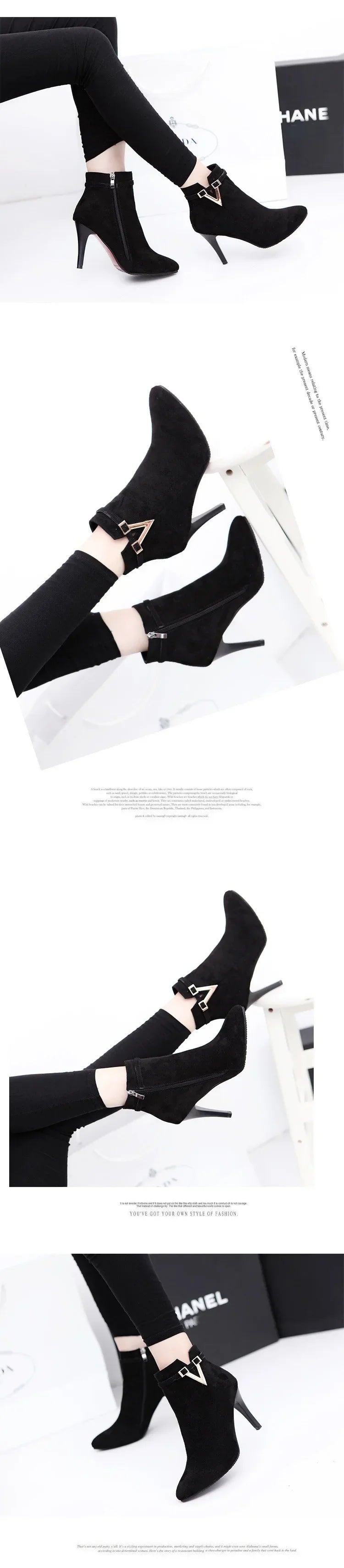 Botas de tacón fino de aguja con punta puntiaguda de piel sintética con cremallera, sexys, hasta el tobillo, para mujer, tacones altos rojos de 9 cm, para primavera y otoño, talla 40