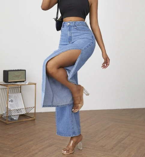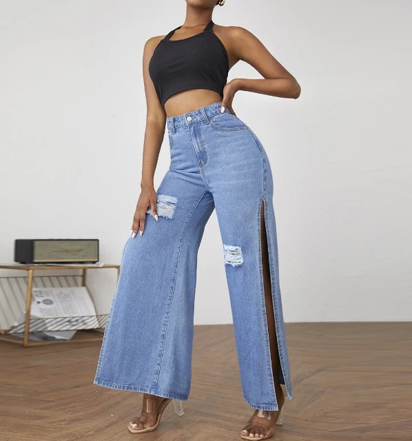 Vaqueros de pierna ancha para mujer, nueva tendencia de personalidad, vaqueros largos de cintura alta, vaqueros con aberturas sexys, pantalones de pierna ancha, pantalones largos de mezclilla