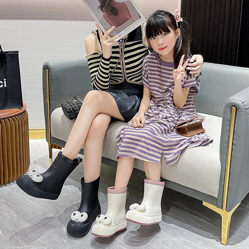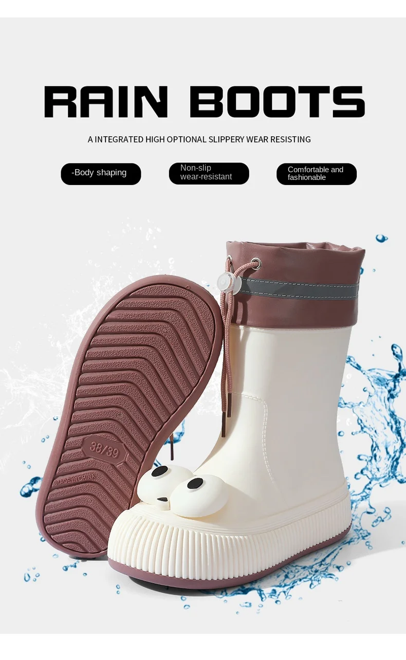 Botas de lluvia para mujer, impermeables, ligeras, con ojales grandes y asas fáciles de poner, resistentes al agua, de altura media.