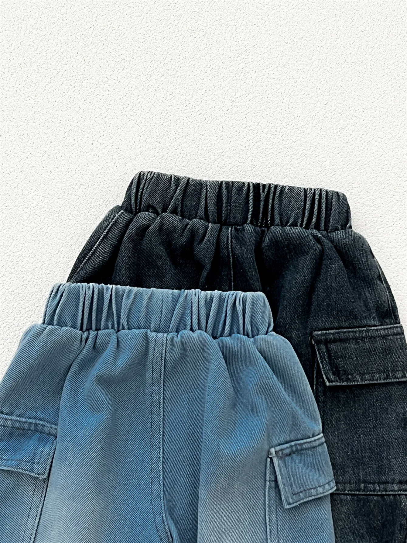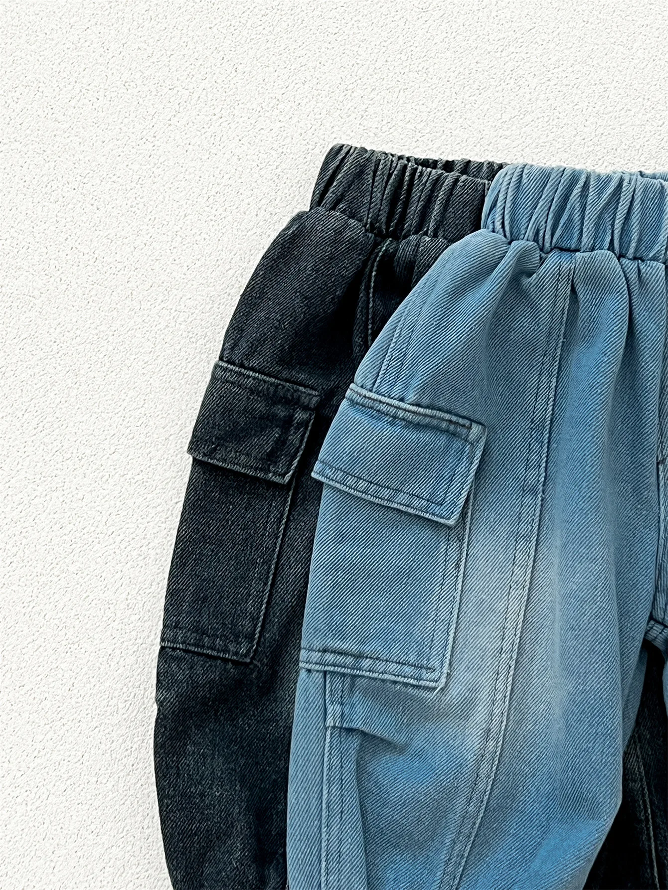 Pantalons en denim pour enfants, nouveaux pantalons cargo amples pour garçons, pantalons décontractés à poches solides pour filles, jeans polyvalents pour enfants, vêtements pour bébés