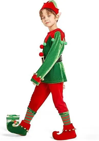 精灵儿童服装圣诞老人小帮手儿童圣诞精灵连衣裙女孩套装