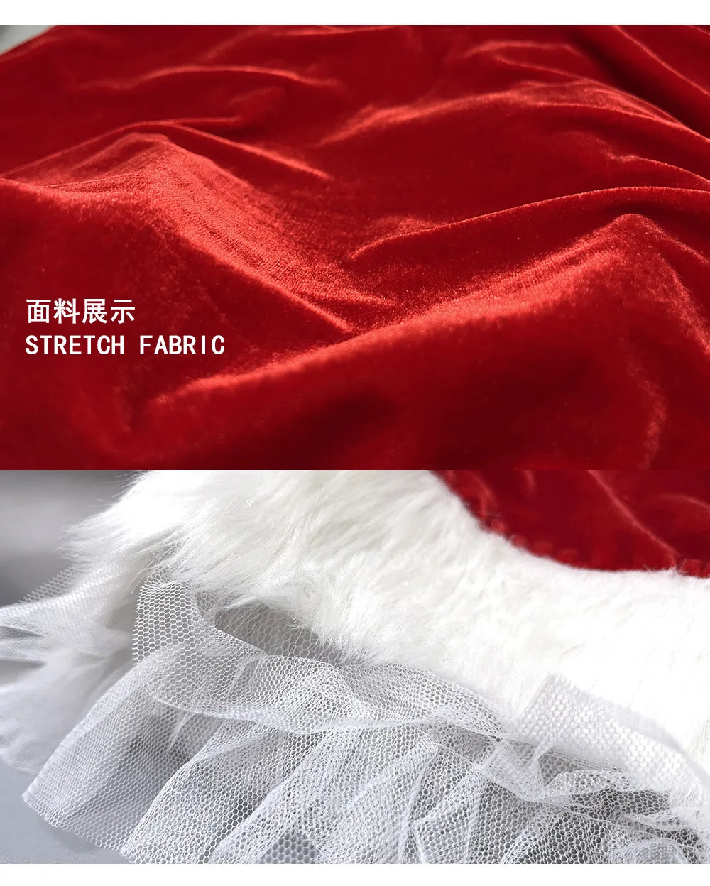 Nouvelle tenue tendance pour femme, manches courtes, unie, déguisement de Père Noël, thème Noël, avec ceinture et robe fantaisie.