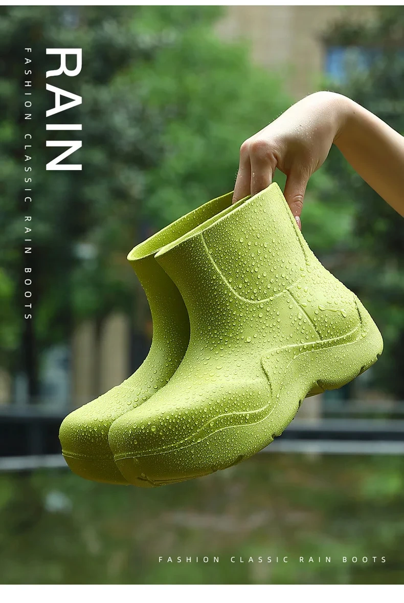 New Rubber Ladies Non-slip Waterproof Ankle Rainboots Shoes Thick Bottom Short Boot Galoshes Pink Women Rain Boots
