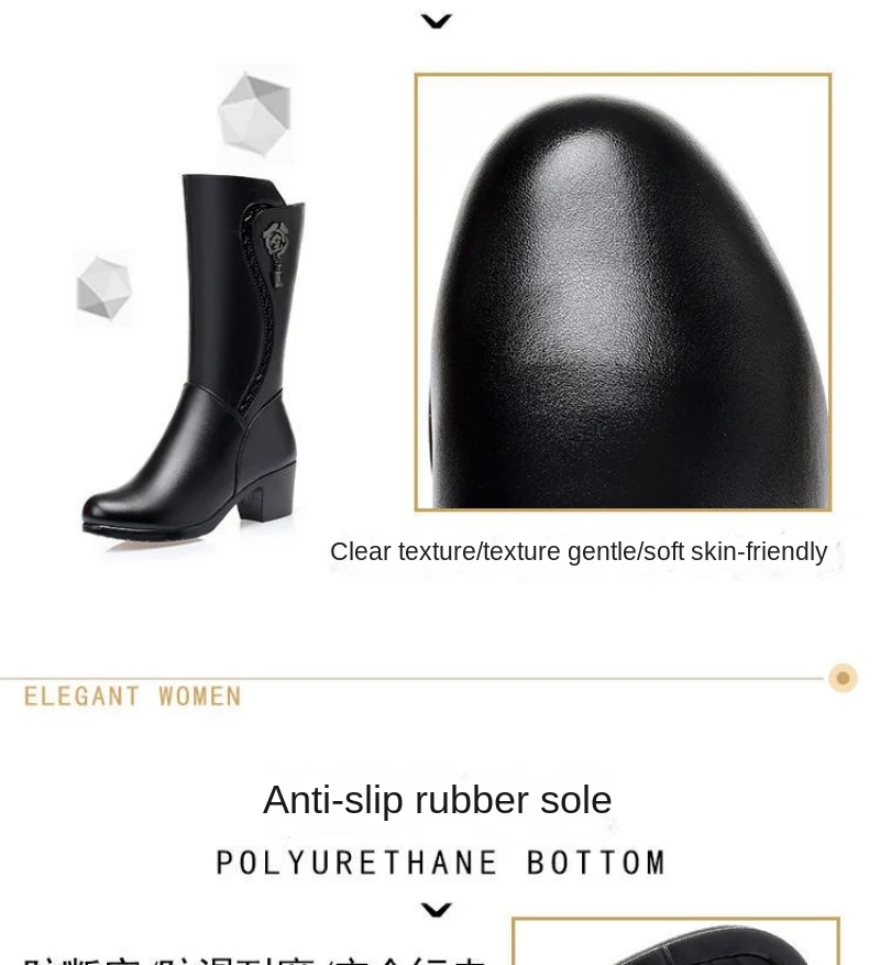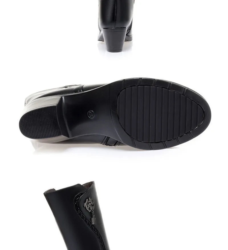 Winter Women's Boots Plush Warm Snow Boots Fashion Mid-calf High Heel Boots for Women High-quality Leather Boot Botas Mujer