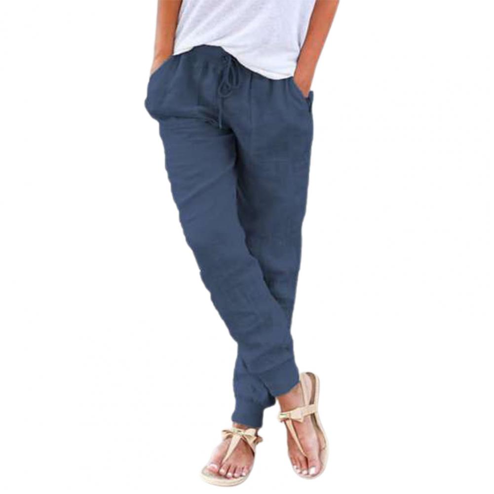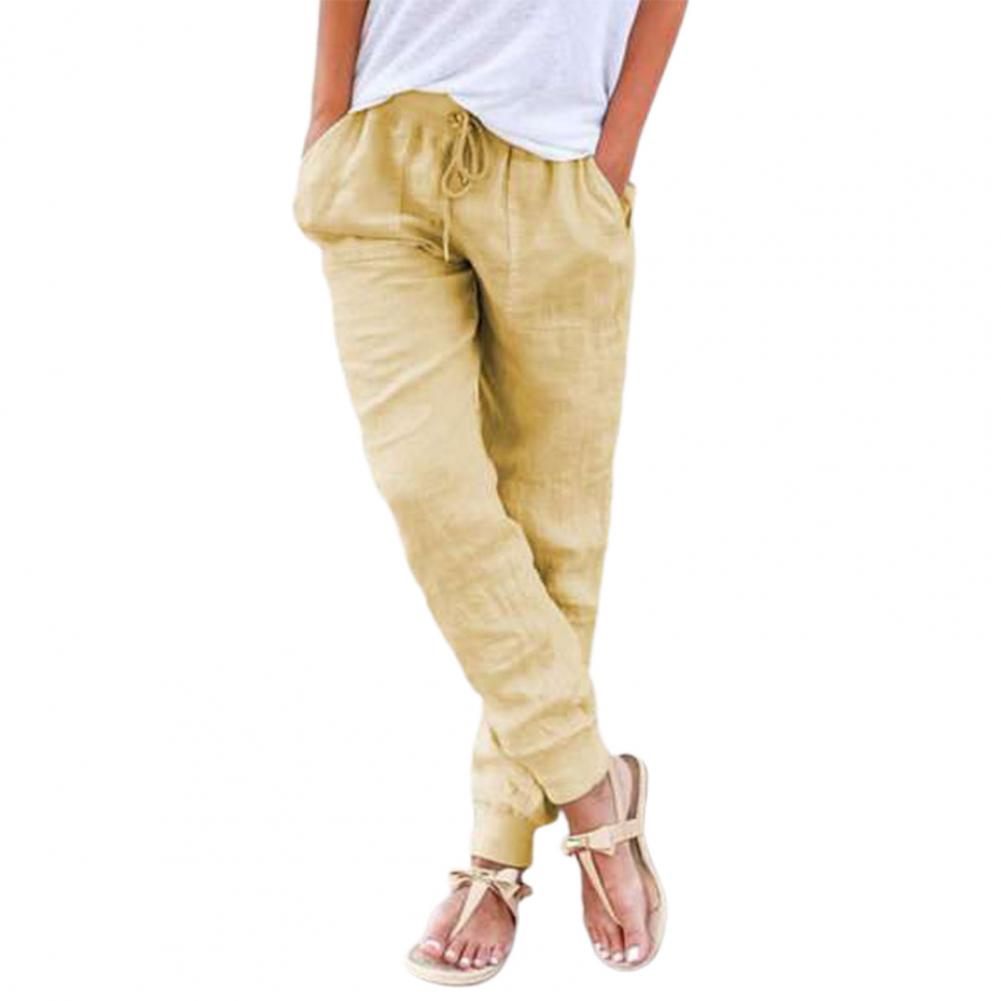 New Women Pants Sweat Absorbent Pockets Solid Color Elastic Waist Drawstring Trousers Casual Pants S-3XL