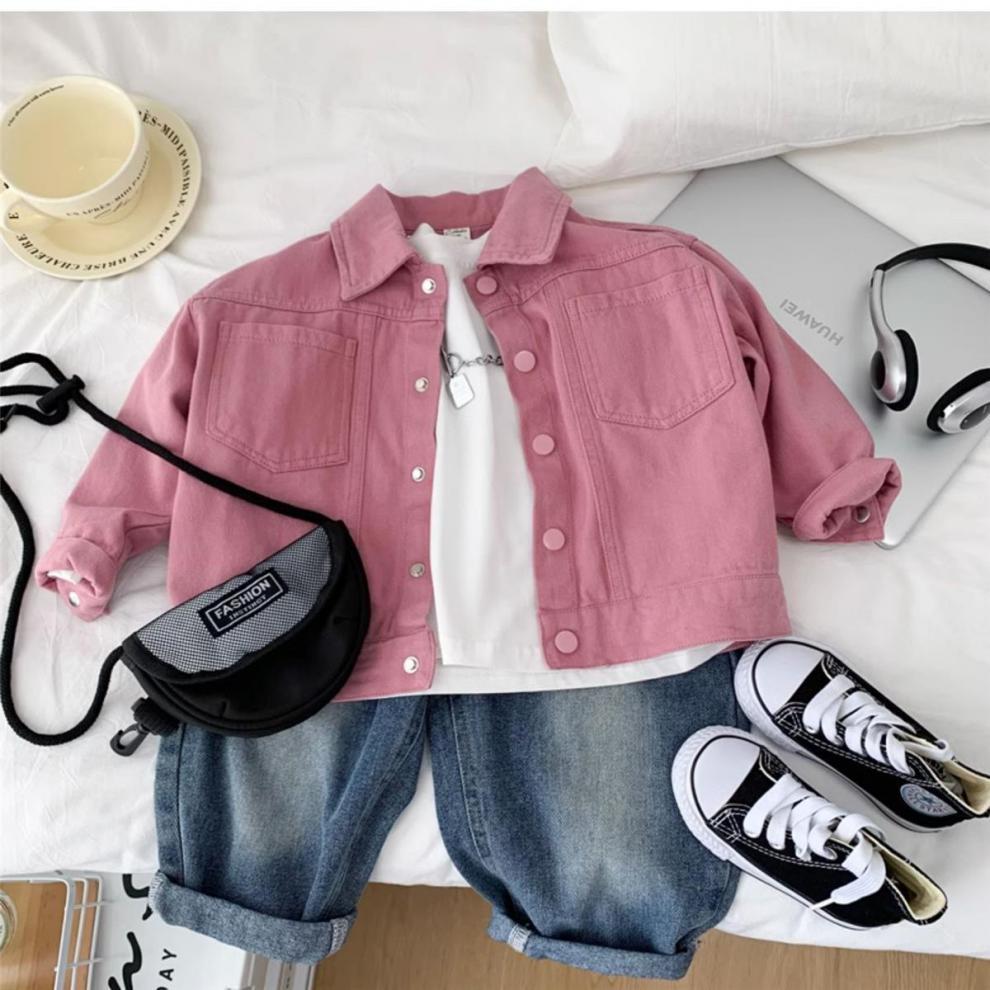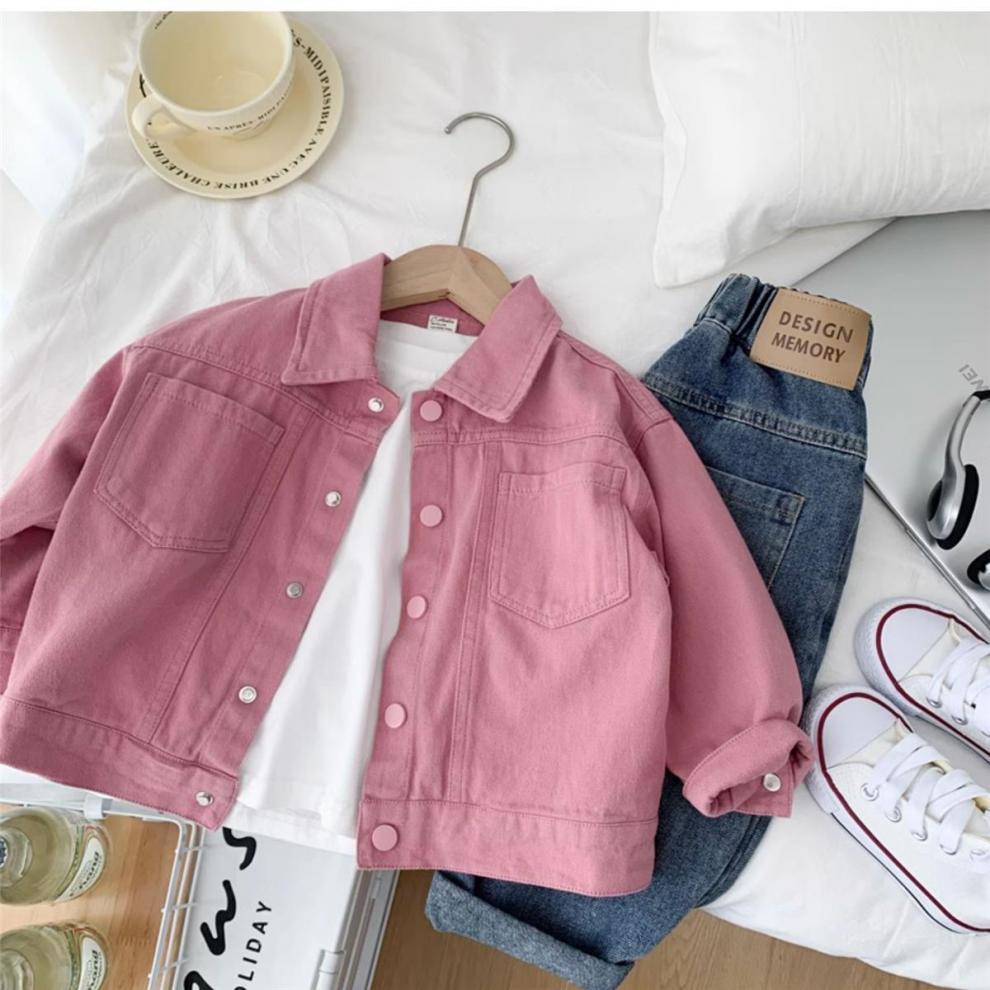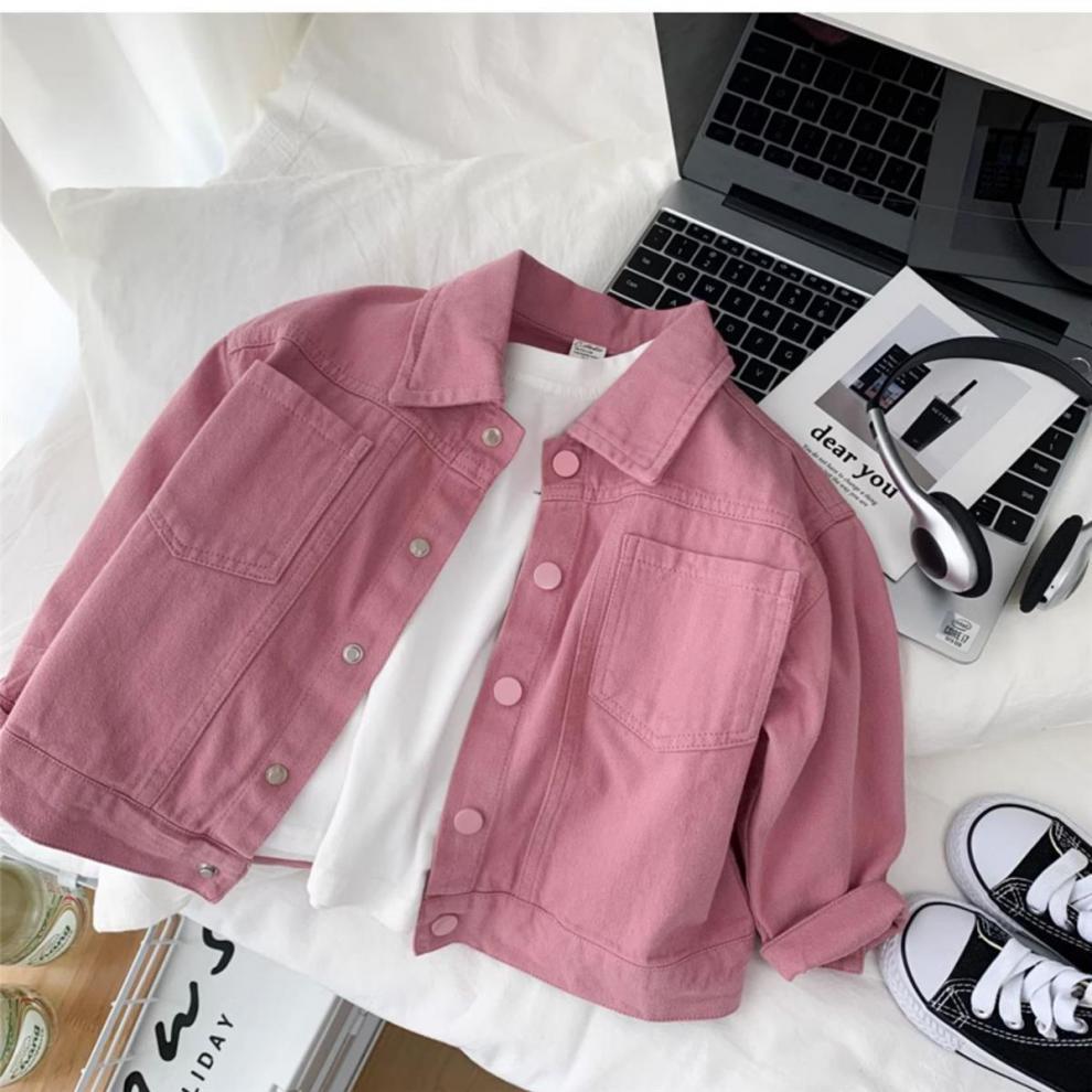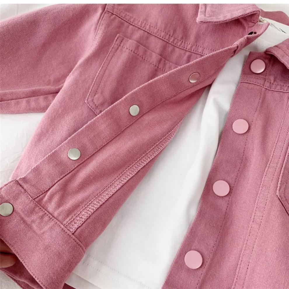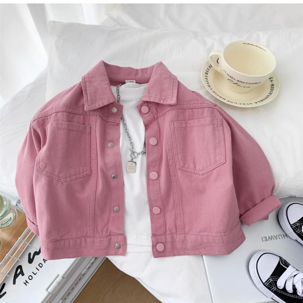Boys Girls Denim cotton Jackets Pink Laple Tops Spring Autumn New Fashion Sweet Cute Coat Jacket Baby Girl Clothes 2-10Yrs