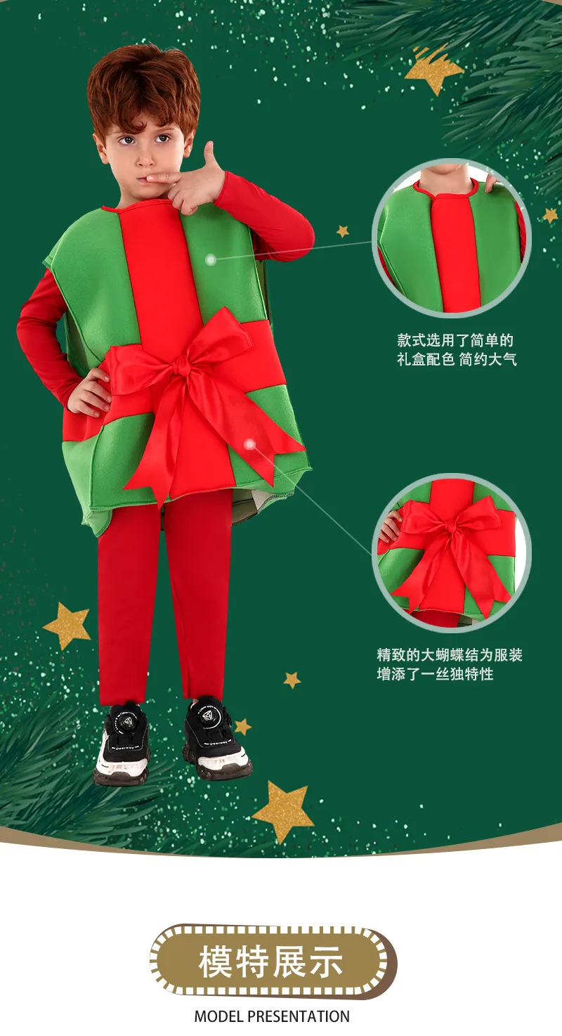 Children's Christmas Performance Costumes: Santa Claus & Gift Box Styles for Holiday Parties & Shows