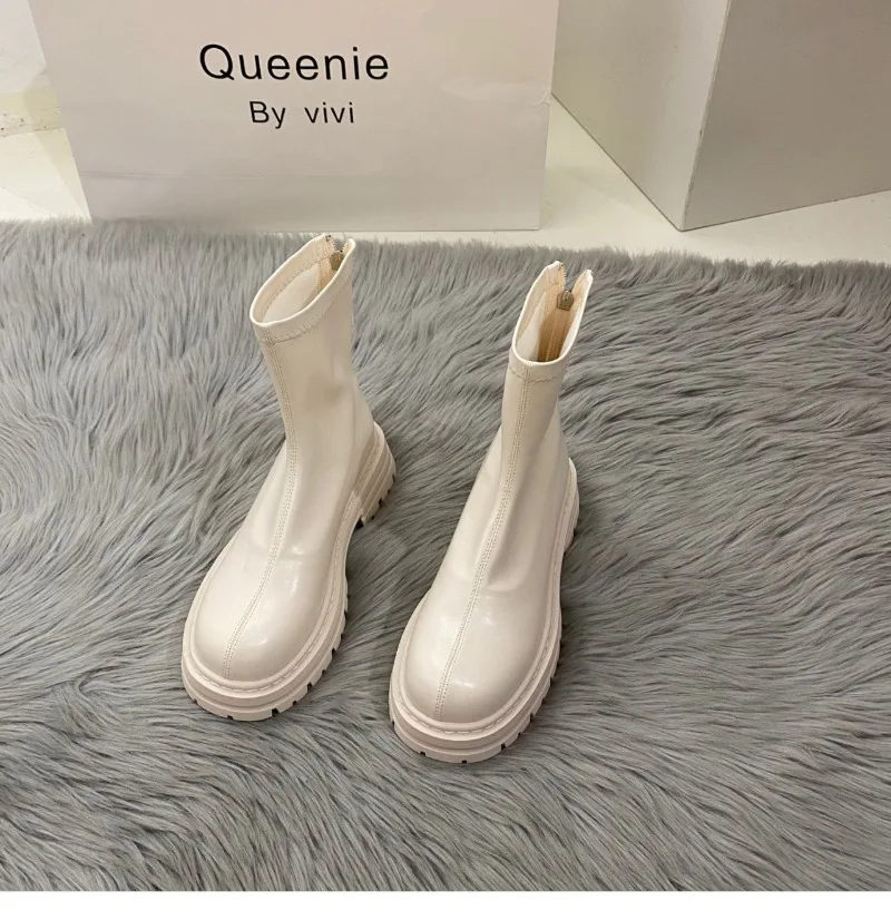 Ladies Shoes High Quality Back Zipper Women's New Round Toe Modern Boots Women Fashion Versatile Non-Slip Mid-Calf Boots