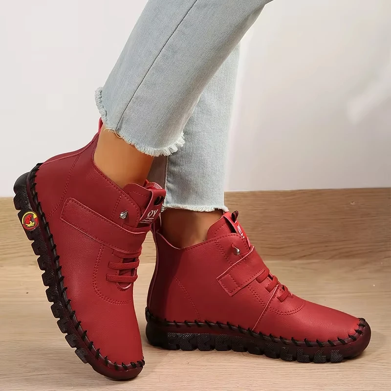 Pu Leather Red Boots Woman Soft Bottom Orthopedic Autumn Winter Shoes Women Plus Size Fleece Ankle Boots for Women Mom Moccasins
