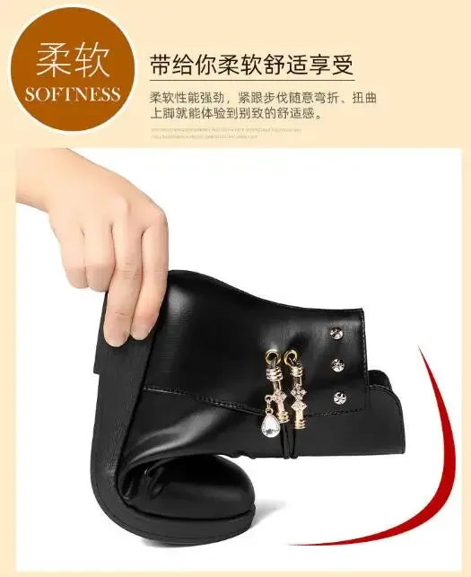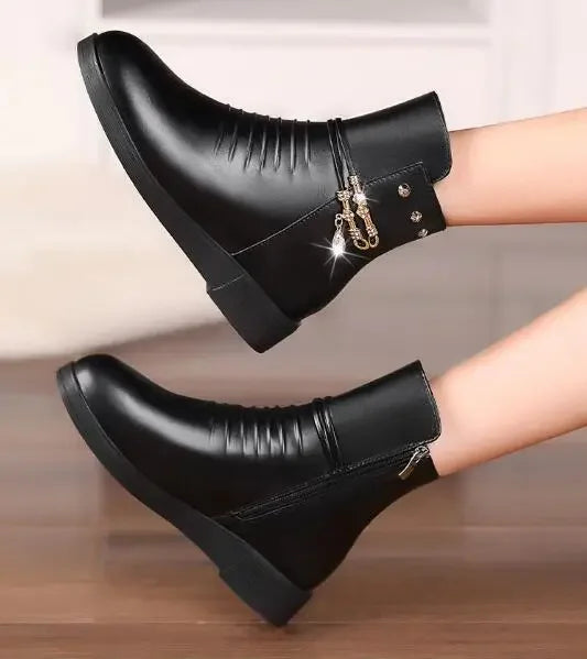 Solid Black NEW Women Luxury Brand Designer Snow Boots Metal Classic Furry Winter Warm Shoes Female Ankle Boot Women Botas Mujer