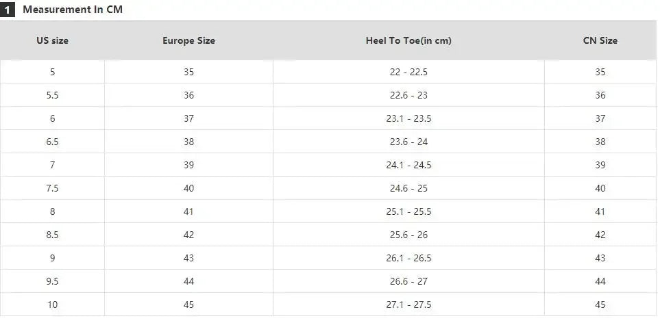 NOTE: foot length is not the insole length!( foot length less than insole length)manual measurement, please allow 0.5cm error.thanks
