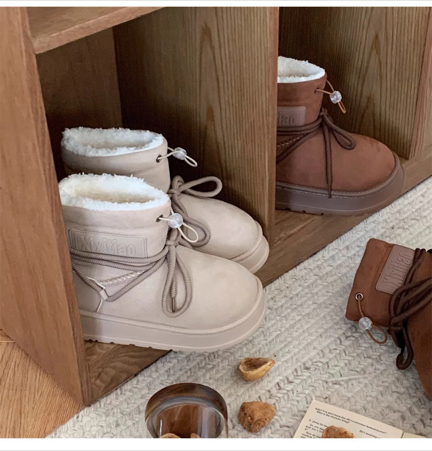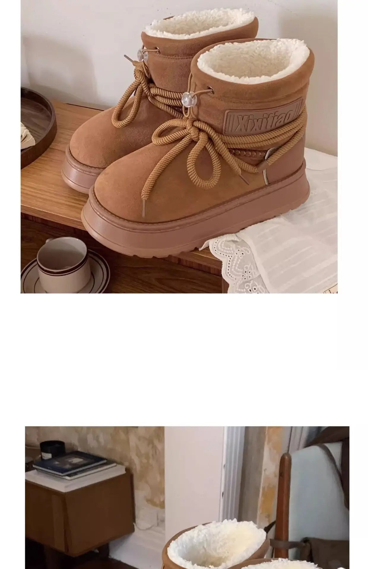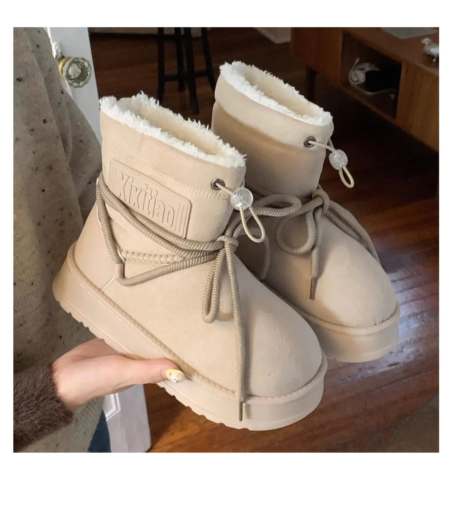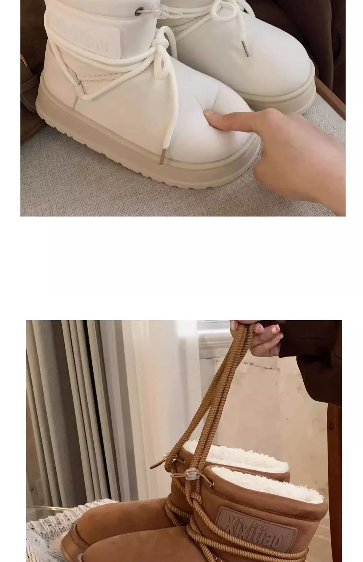 Women’s Snow Boot With Waterproof Lace Up Mid-Calf Outdoor Winter Deep Tread Rubber Sole
